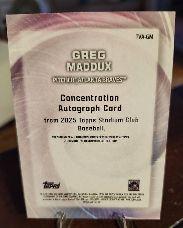 2025 TOPPS STADIUM CLUB GREG MADDUX PURPLE CONCENTRATION AUTO /10.