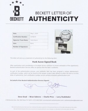 Hank Aaron Signed “The 500 Home Run Club” 122/500, Beckett