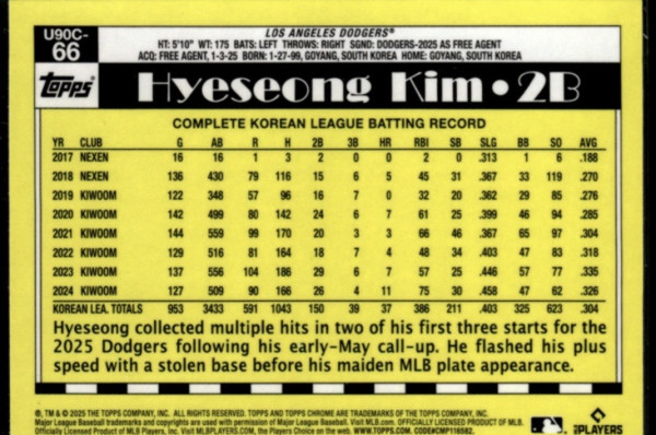 Hyeseong Kim 2025 Topps Update Series 1990 Topps Chrome Green Mojo (RC) /99 #U90C-66