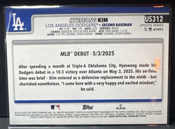 Hyeseong Kim Rookie Debut 2025 Topps Update #US312 Holiday Jack O’Lantern Foil