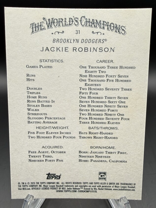 Jackie Robinson 2025 Topps Allen & Ginter Foil Fillatate SP #31
