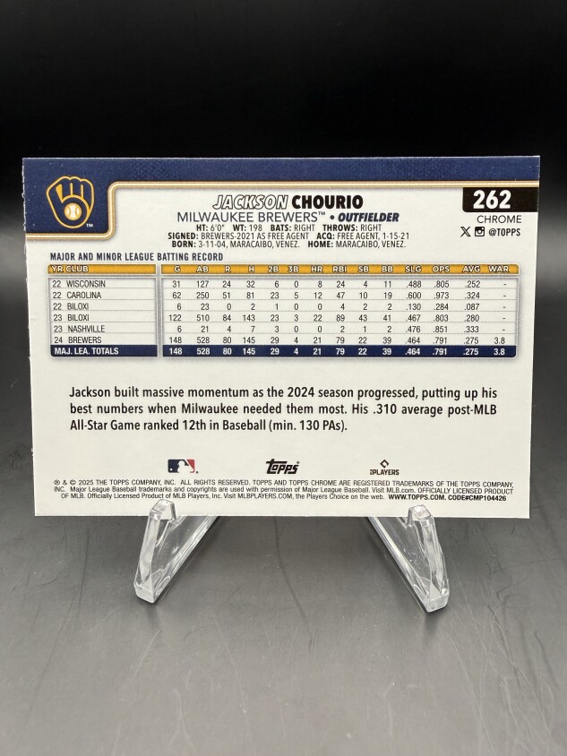 Jackson Chourio 2025 Topps Chrome #262