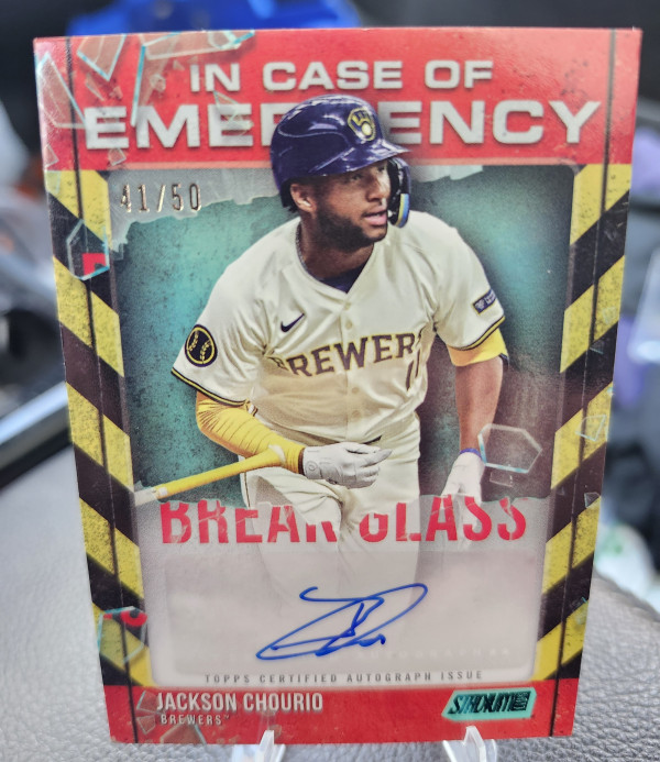2025 TOPPS STADIUM CLUB JACKSON CHOURIO IN CASE OF EMERGENCY AUTO /50.