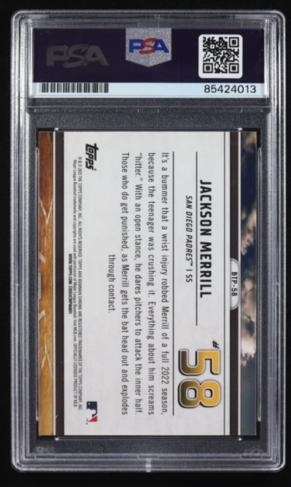 Jackson Merrill Signed 2023 Bowman Chrome Scouts Top 100 #58 RC (PSA)