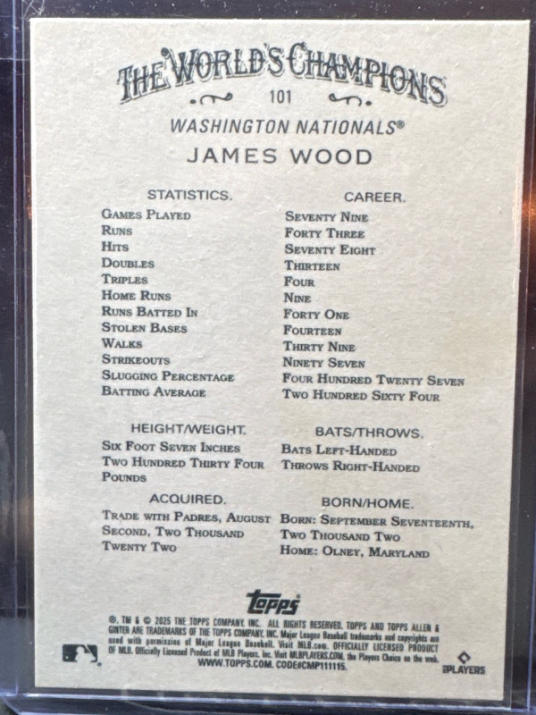James Wood 2025 Topps Allen & Ginter #101 RC Washington Nationals