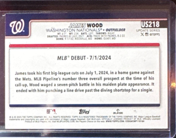 James Wood (RC) - 2025 Topps Update Holiday Foil #US218 - Nationals