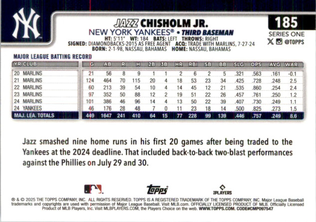Jazz Chisholm Jr. 2025 Topps 582 Montgomery Club Foil