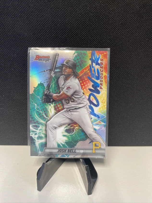 This is a Josh Bell 2019 Bowman's Best Power Producers #PP-JB sports trading card featuring the player from the Pittsburgh Pirates. The card is made of card stock and is an original, not a licensed reprint. It is an insert card and part of the 2019 set. The card number is PP-JB and it is a base variation. This trading card is perfect for any baseball fan, especially those who collect cards.