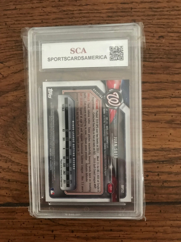 Juan Soto 2018 Bowman Rookie. Graded SCA 10. Gem Mint Condition.
