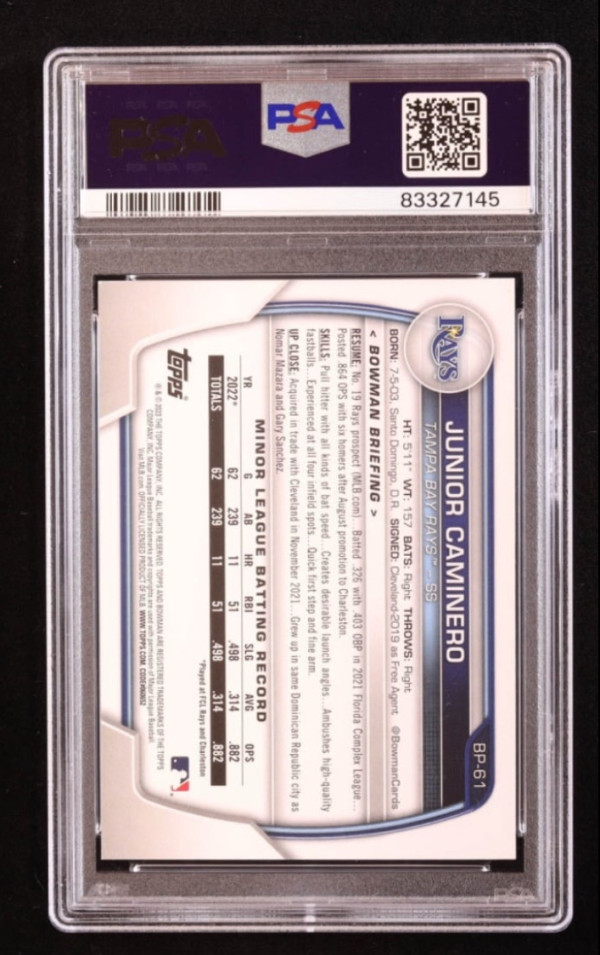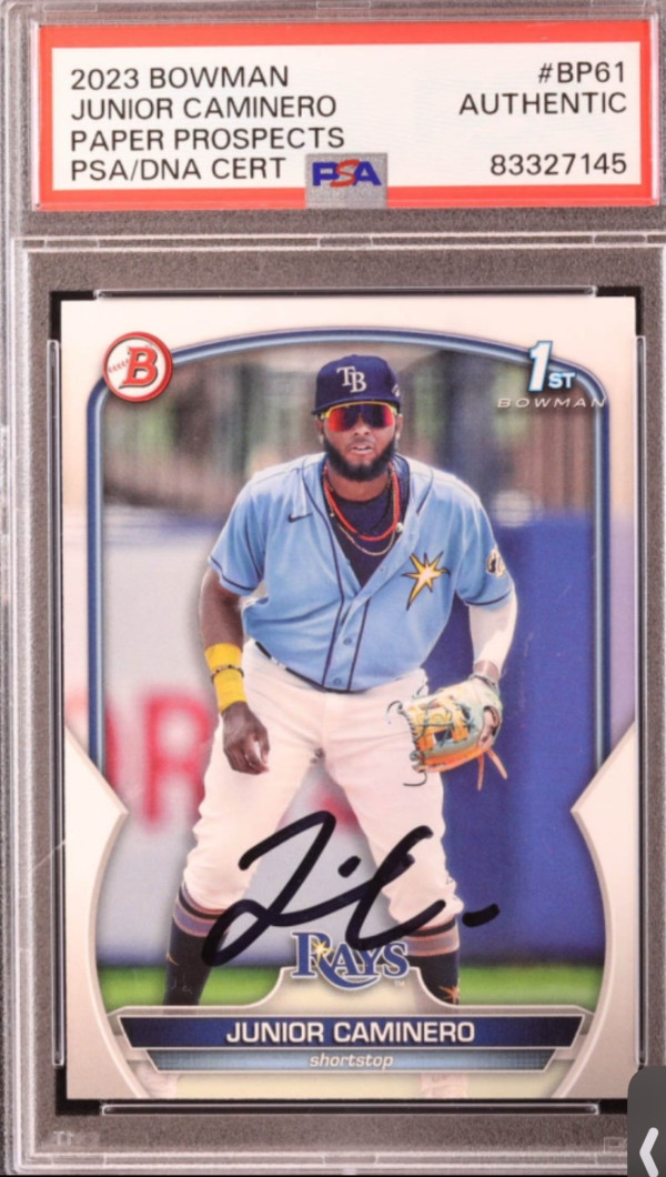 Junior Caminero Signed 2023 Bowman Prospects #BP61 RC