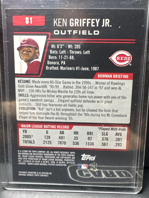 KEN GRIFFEY JR - MLB HOF - 2006 BOWMAN BASE CARD # 81 - MARINERS - REDS - MLB