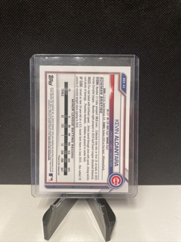 This is a 2020 Bowman Draft sports trading card featuring Kevin Alcantara of the Los Angeles Dodgers. The card is made of card stock and is an original licensed reprint from Topps. It is a 1st Bowman Chrome card with a parallel variety and is serial numbered BDC-62. The card is in standard size and was manufactured in the United States in 2020. It is a great addition to any baseball fan's collection.