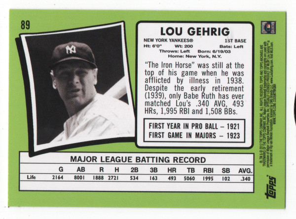 Lou Gehrig - 2012 Topps Archives 1971 Topps Design #89