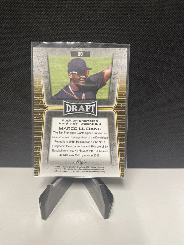 For all the San Francisco Giants fans out there, this is a must-have! The Marco Luciano 2020 Leaf Draft #5 trading card is a great addition to any collection. With its high-quality card stock material and original design, this card is sure to impress.