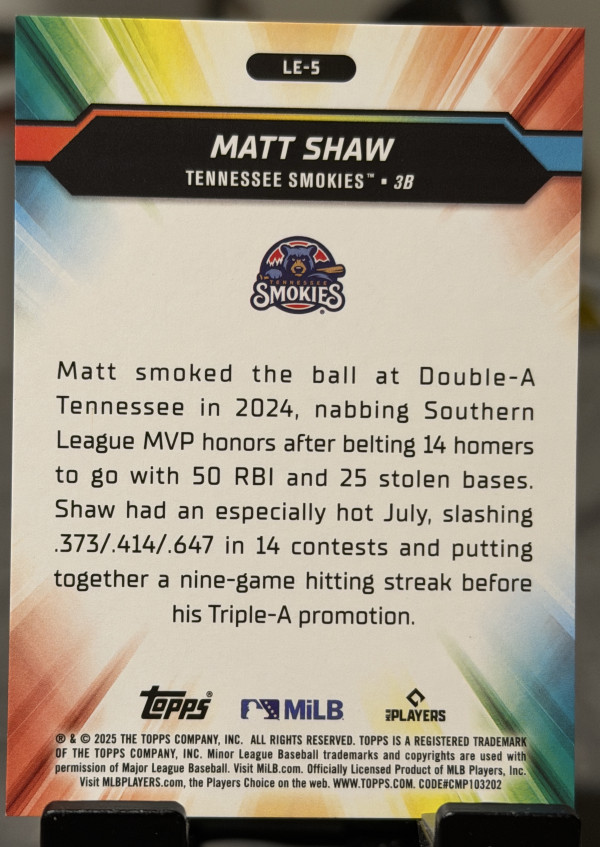Matt Shaw 2025 Topps Pro Debut League Elites Sacramento River Cats #LE-5 RC