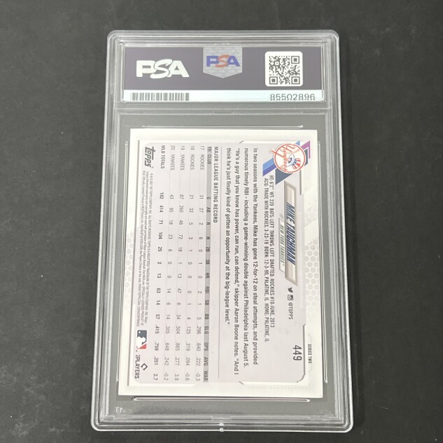 This listing features a 2021 Topps Baseball Series 2 #449 Mike Tauchman, professionally PSA authenticated.