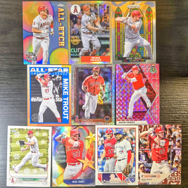 Mike Trout -'21 Stained Glass, '24 All-Etch, '22 Chrome 1987, Sandglitter & More