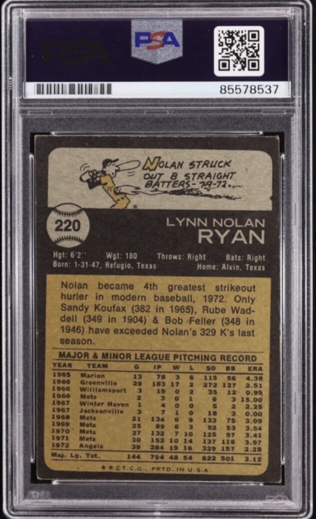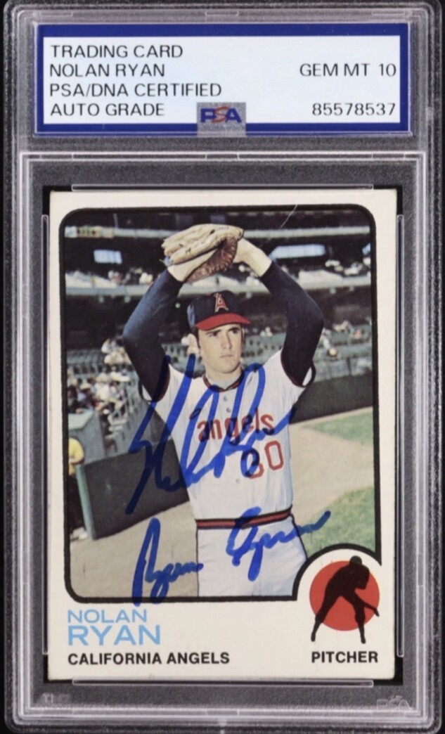 🔥 Nolan Ryan Signed 1973 Topps Inscribed "Ryan Express" #220, PSA Auto 10