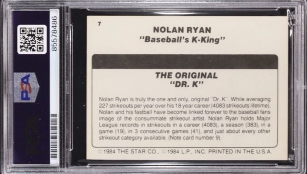 Nolan Ryan Signed 1986 Star Co. The Original "Dr. K" #7, PSA Auto 10