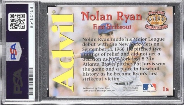 Nolan Ryan Signed 1996 Pacific Collection Advil #1a, PSA Auto 10