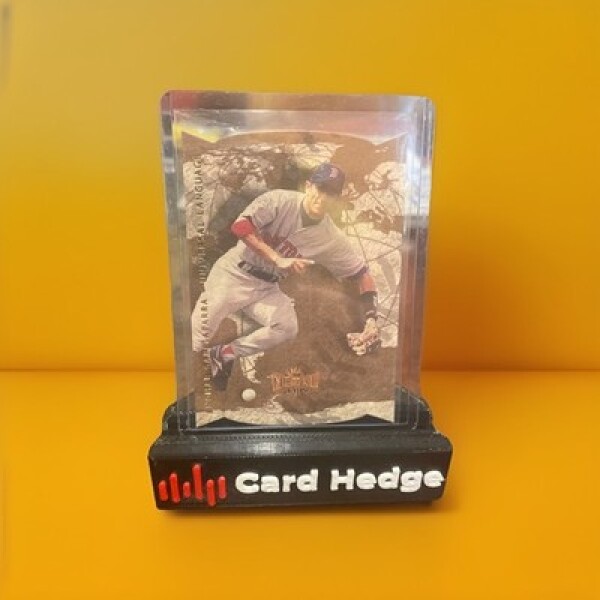 The Nomar Garciaparra 1998 Metal Universe Universal Language #10 trading card is a collectible item featuring the former MLB player from the Boston Red Sox. This card is part of the 1998 Metal Universe set by SkyBox, with a die-cut variety design and made of card stock material. It is an original insert card with English language text, representing the Universal Language theme. This standard-sized sports trading card is a valuable addition for fans of baseball memorabilia and collectors of sports cards.
