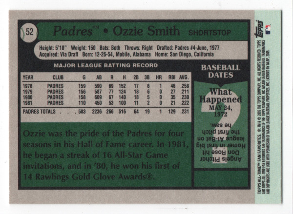 Ozzie Smith - 2005 Topps All-Time Fan Favorites #52