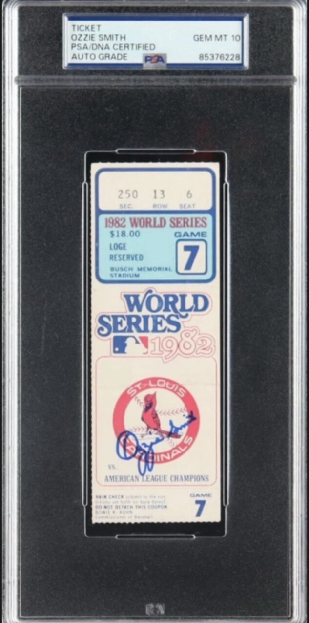 🔥🔥 Ozzie Smith Signed 1982 World Series Game 7 Ticket, PSA Auto 10