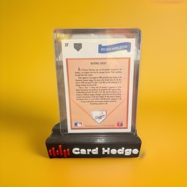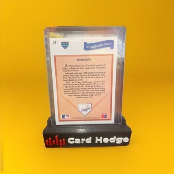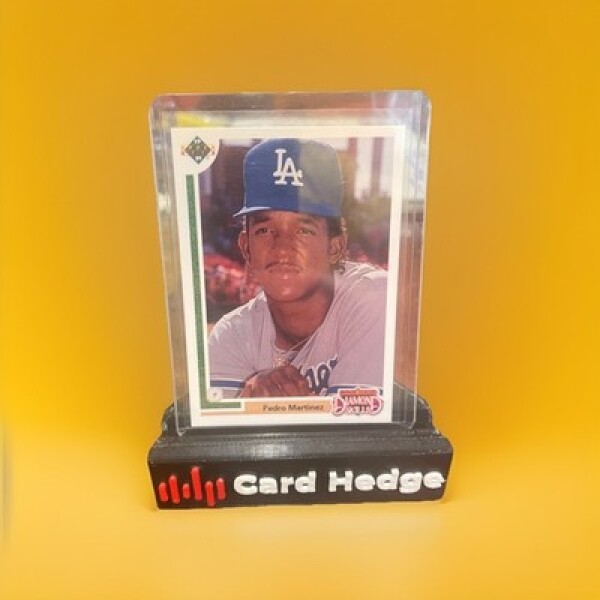 The Pedro Martinez 1991 Upper Deck Final Edition #2F trading card is a standard-sized collectible featuring the Boston Red Sox pitcher during his rookie season in the Major League (MLB). This original card is made of card stock with a 20 Pt. thickness, manufactured by Upper Deck in the United States. It is in English and belongs to the 1991 Upper Deck Final Edition set, making it a valuable addition to any baseball card collection. This card showcases Pedro Martinez as a rookie player for the Los Angeles Dodgers, making it a desirable item for fans and collectors alike.