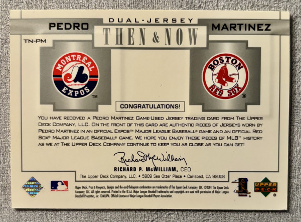 Pedro Martinez 2001 UD Then & Now Dual Jersey