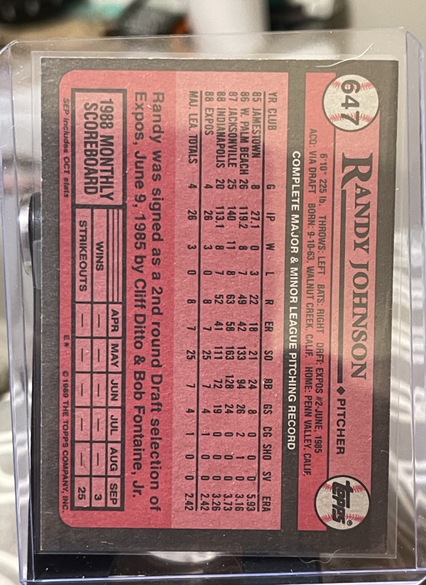 Rare Error Halo 1989 Topps Randy Johnson Rookie #647 Montreal Expos RC NM-MT