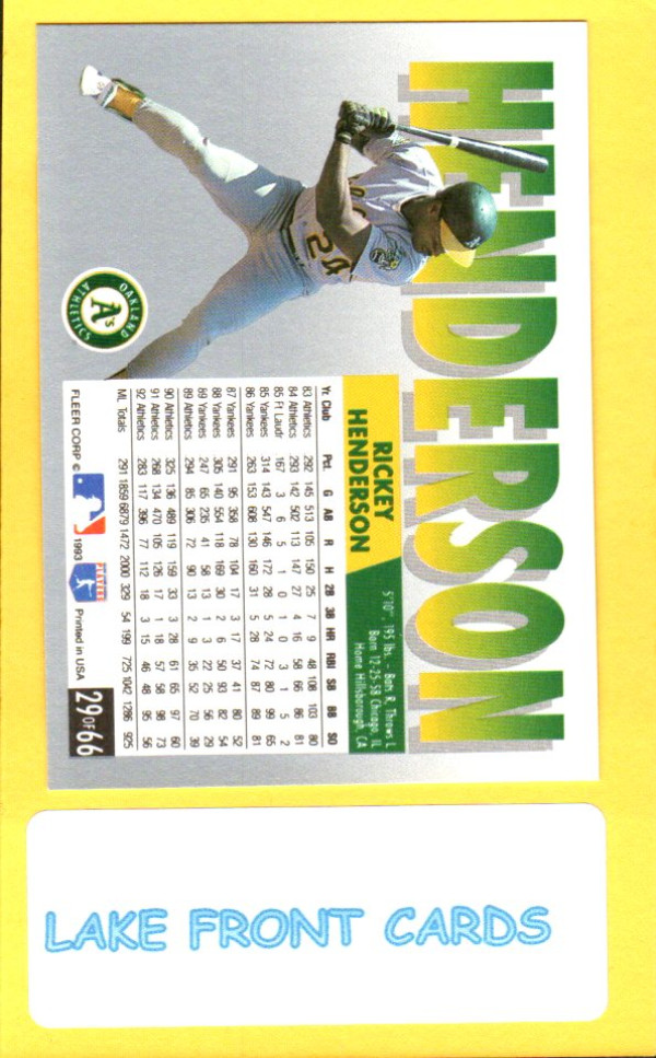 ⚾ Rickey Henderson #29 1993 Fleer Fruit of the Loom Baseball Card