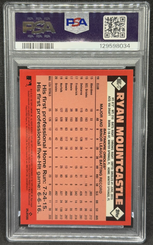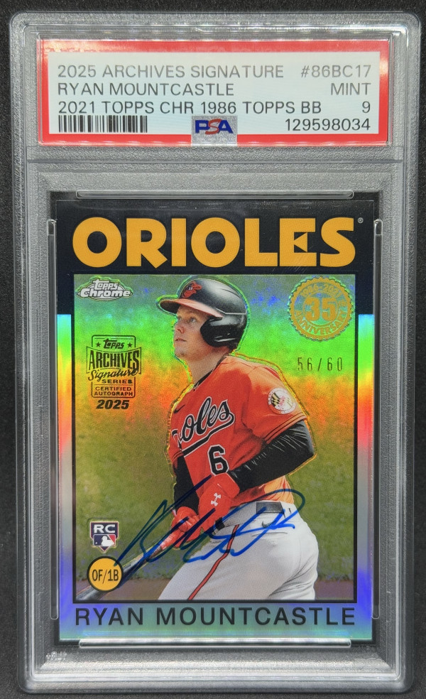 Ryan Mountcastle 2025 Topps Archives Signature Series /60 Rookie (RC) Auto #86BC17 PSA 9 - Orioles