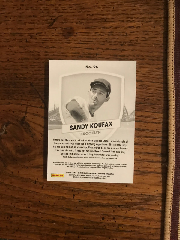 Sandy Koufax 2021 Panini Chronicles. Mint Condition.