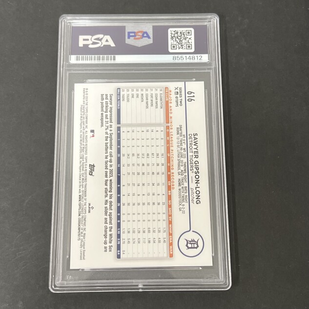 This listing features a 2024 Topps Series 2 #616 Sawyer Gipson-Long, professionally PSA authenticated.