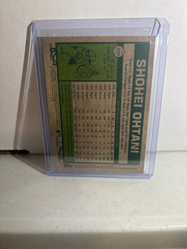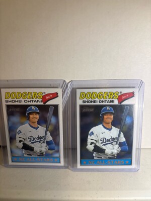 The product is a 2026 Topps Heritage Shohei Ohtani Chrome trading card featuring the player in his Dodgers uniform. This baseball card is part of the Topps Heritage set and is authenticated by Topps. The card is a standard size made of card stock with a 20 Pt. thickness. It is a parallel variety with a Chrome finish, making it a desirable collectible for fans and collectors a like. Plus you get another one raw.