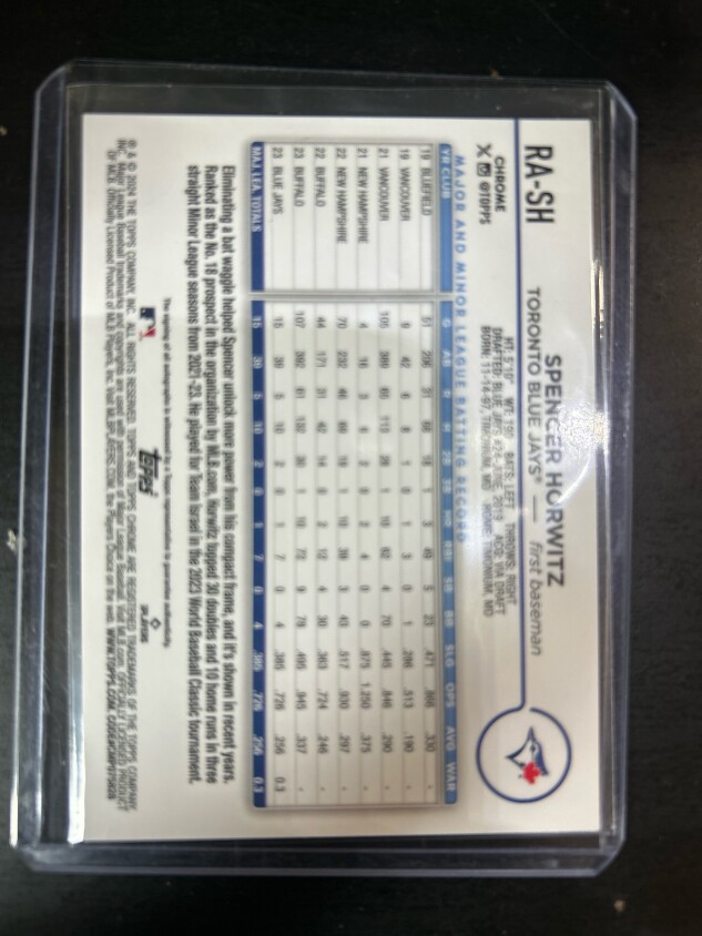 SPENCER HORWITZ 2024 Topps Chrome SP True Blue RC Refractor Auto /150