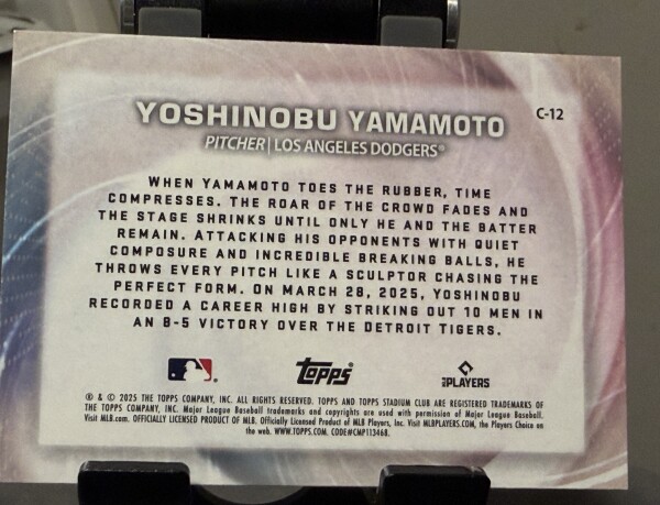 Topps 2025 Stadium Club Yoshinobu Yamamoto Concentration Insert #C12 Dodgers