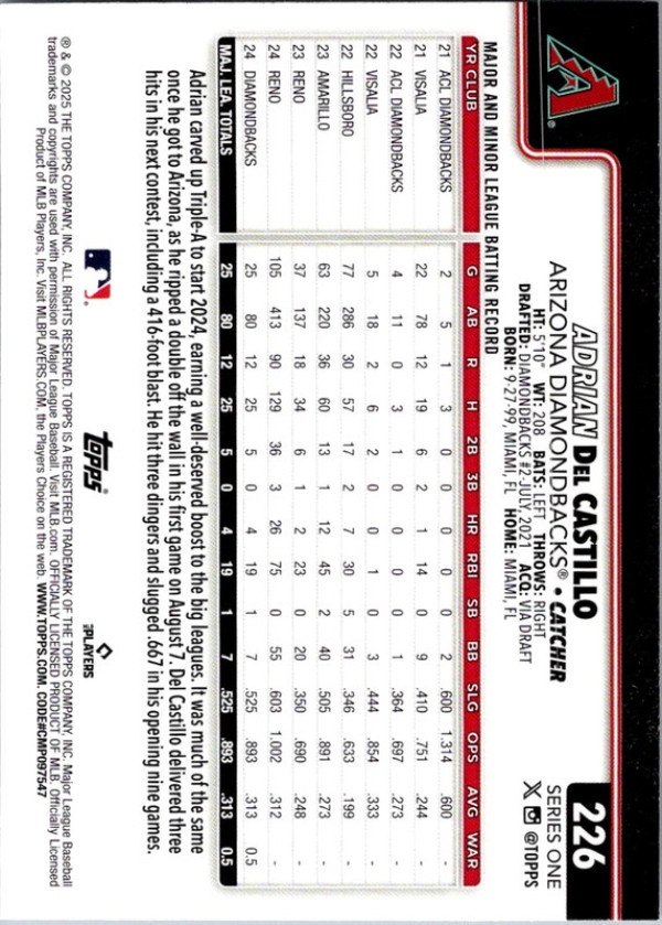 Topps Adrian Del Castillo #226 RC