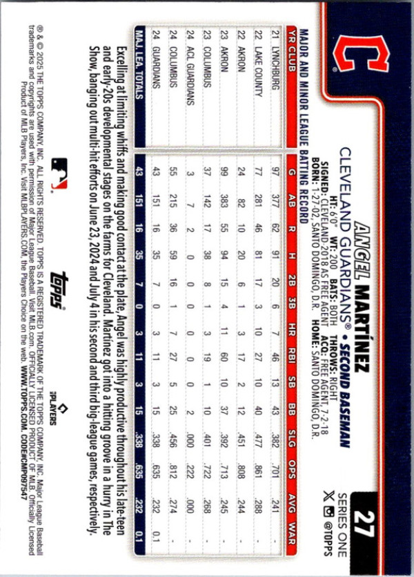 You are purchasing a Topps Angel Martinez #27 RC. You will receive the exact item in the photographs. Thank you for looking.