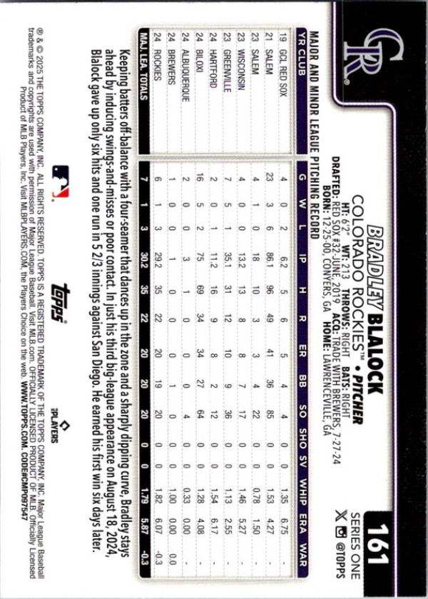 Topps Bradley Blalock #161 RC