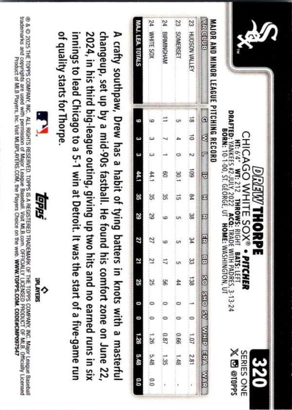 You are purchasing a Topps Drew Thorpe #320 RC. You will receive the exact item in the photographs. Thank you for looking.
