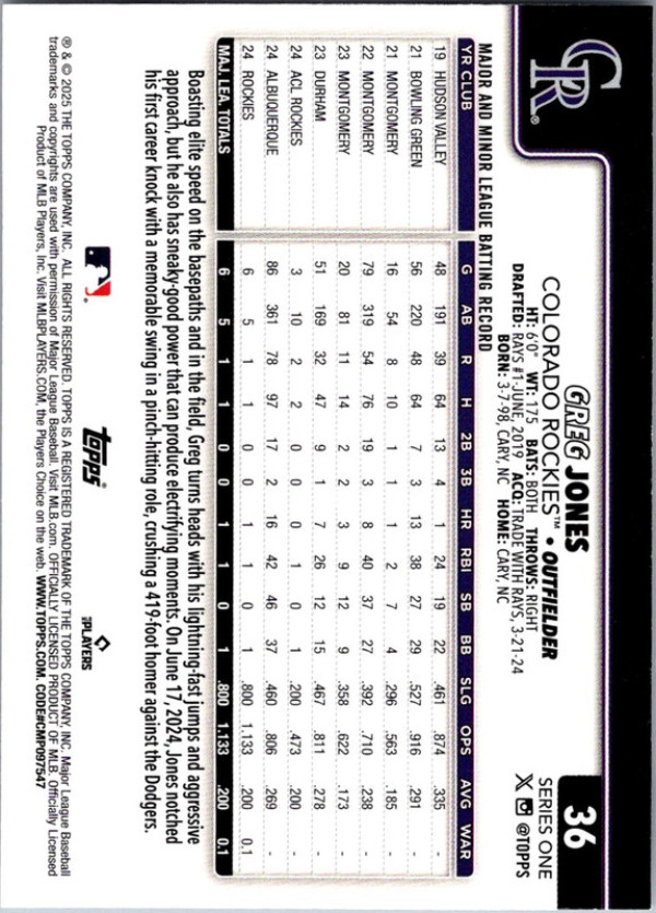 You are purchasing a Topps Greg Jones #36 RC. You will receive the exact item in the photographs. Thank you for looking.