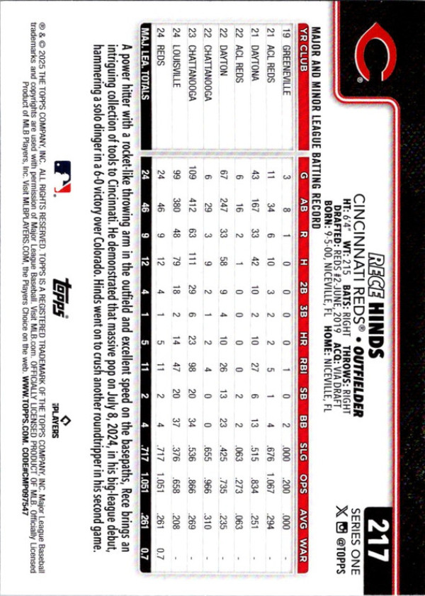 You are purchasing a Topps Rece Hinds #217 RC. You will receive the exact item in the photographs. Thank you for looking.