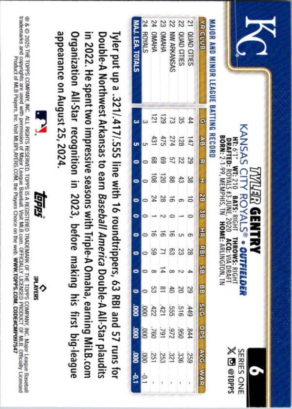 You are purchasing a Topps Tyler Gentry #6 RC. You will receive the exact item in the photographs. Thank you for looking.