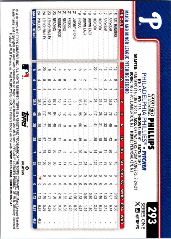 You are purchasing a Topps Tyler Phillips #293 RC. You will receive the exact item in the photographs. Thank you for looking.