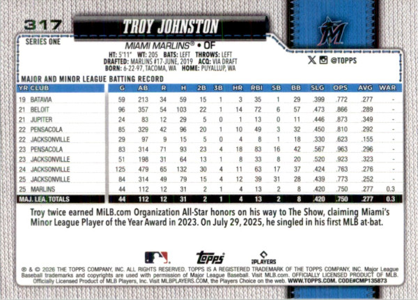 Troy Johnston 2026 Topps #317 Polka Dot Miami Marlins