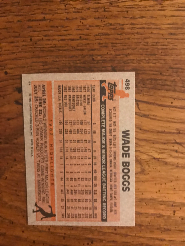Wade Boggs 1983 Topps Rookie. Near Mint-Mint Condition.