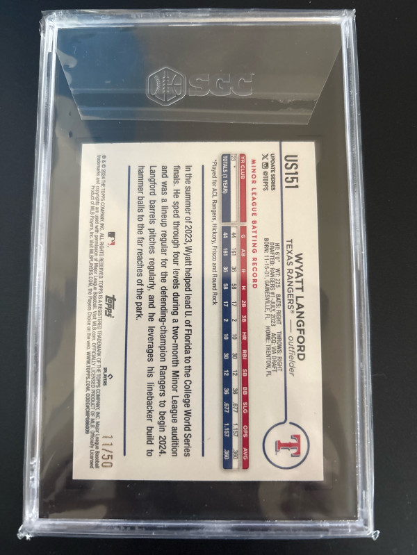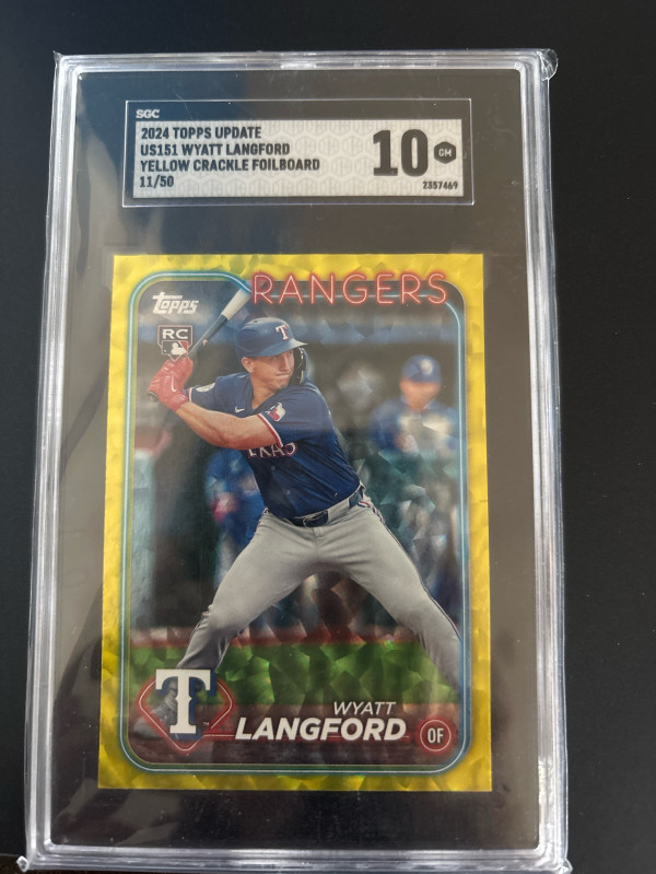 Wyatt Langford Yellow Crackle Foilboard SGC 10 11/50