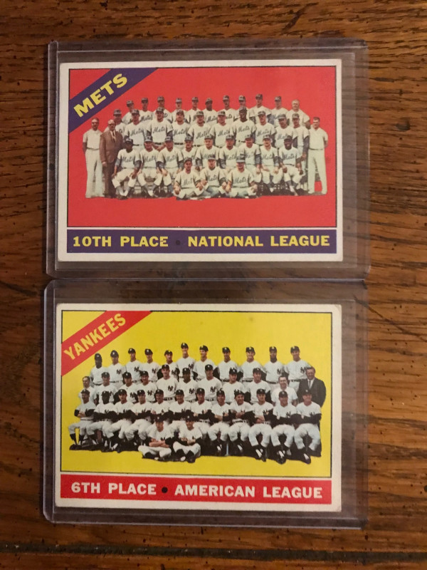 Mets and Yankees 1966 Topps Team Cards. Excellent Condition.