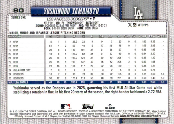 Yoshinobu Yamamoto 2026 Topps #90 Green Foil Los Angeles Dodgers
